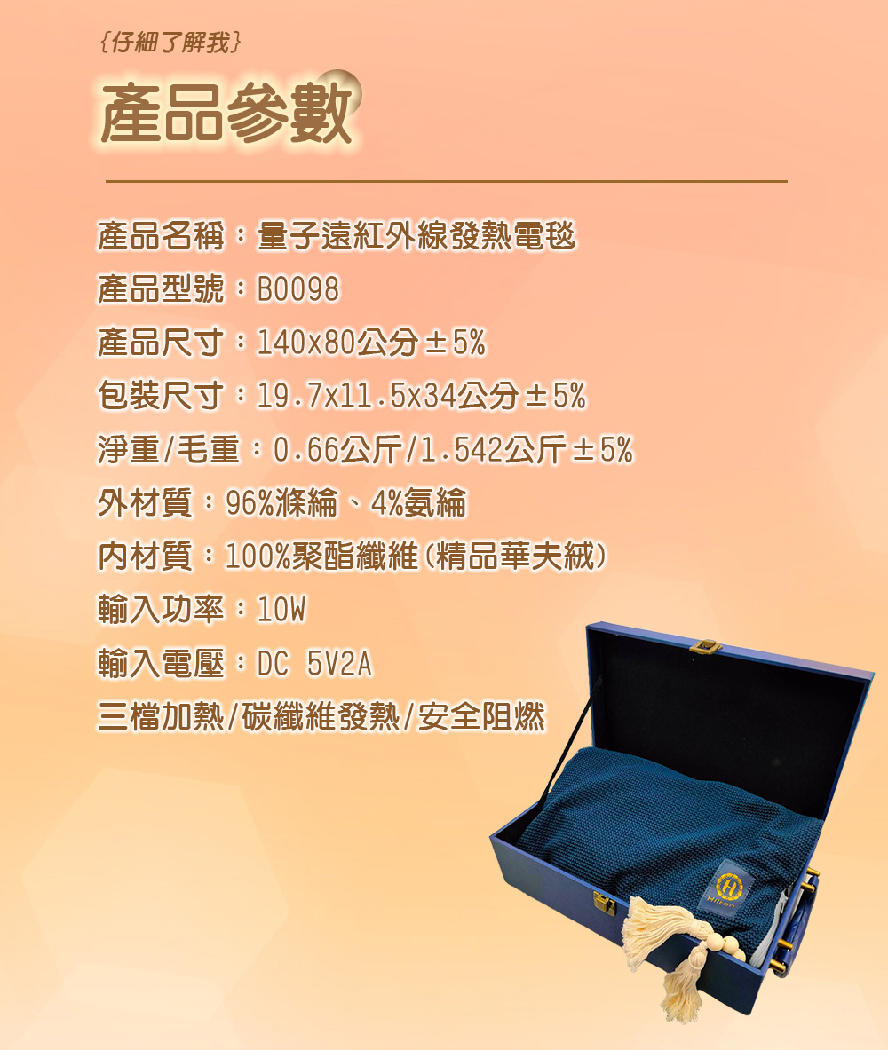 產品名稱:【Hilton 希爾頓】量子遠紅外線發熱電毯