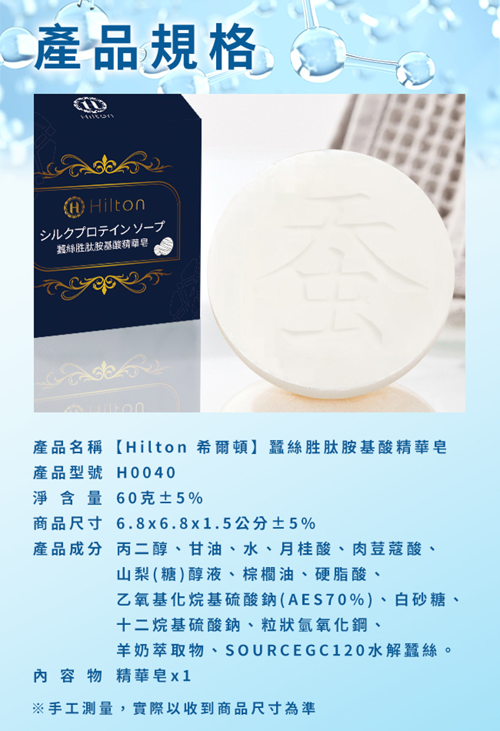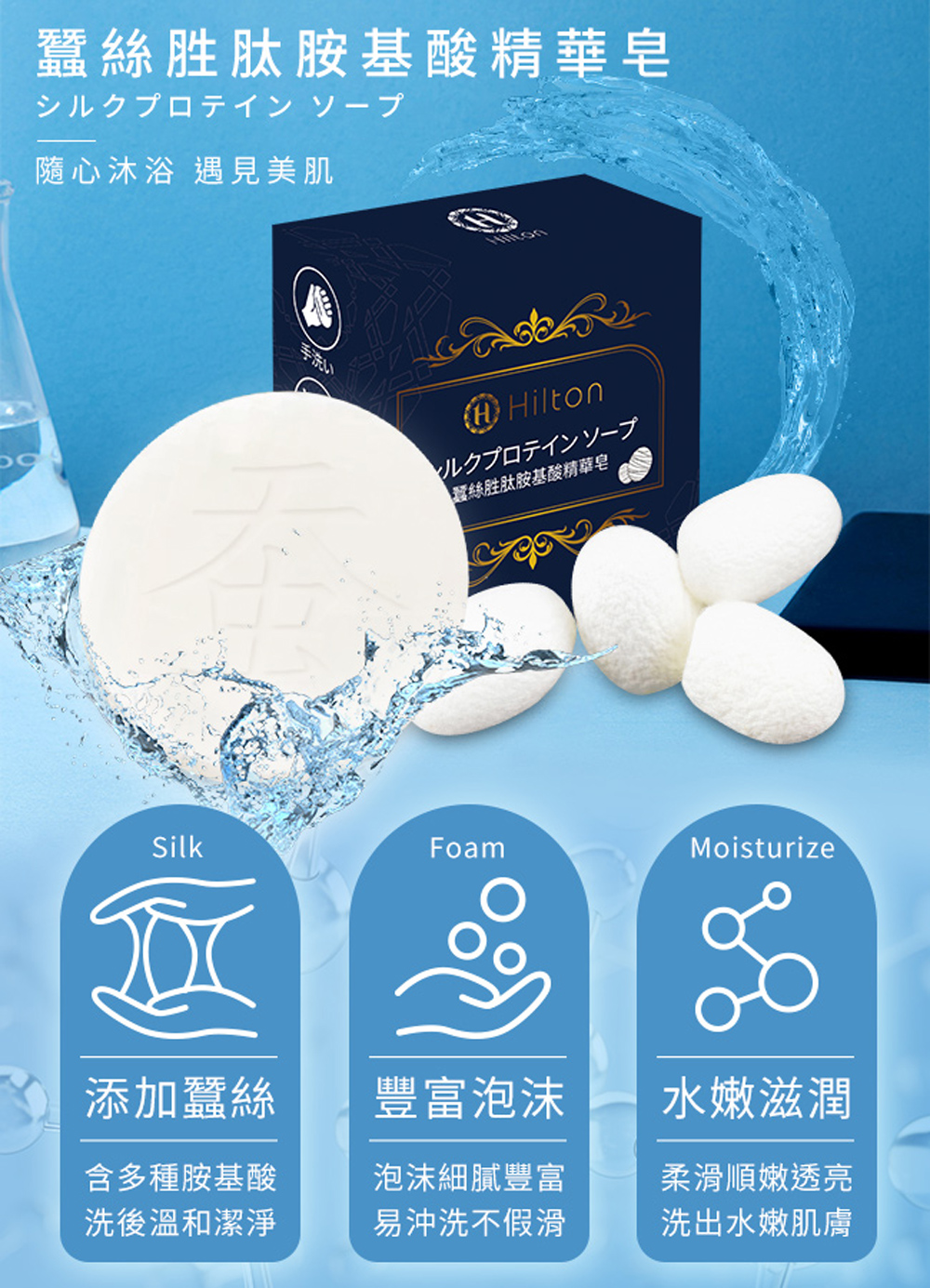 產品名稱:【Hilton 希爾頓】蠶絲胜肽胺基酸精華皂