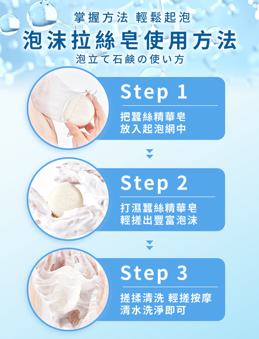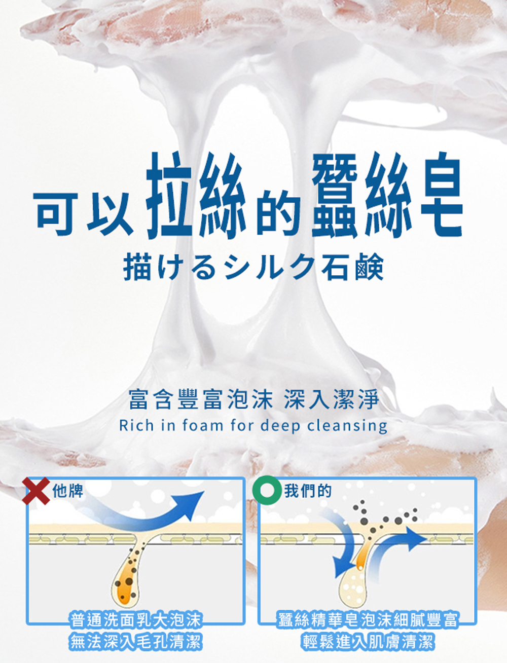 ★絲質柔軟細膩泡沫