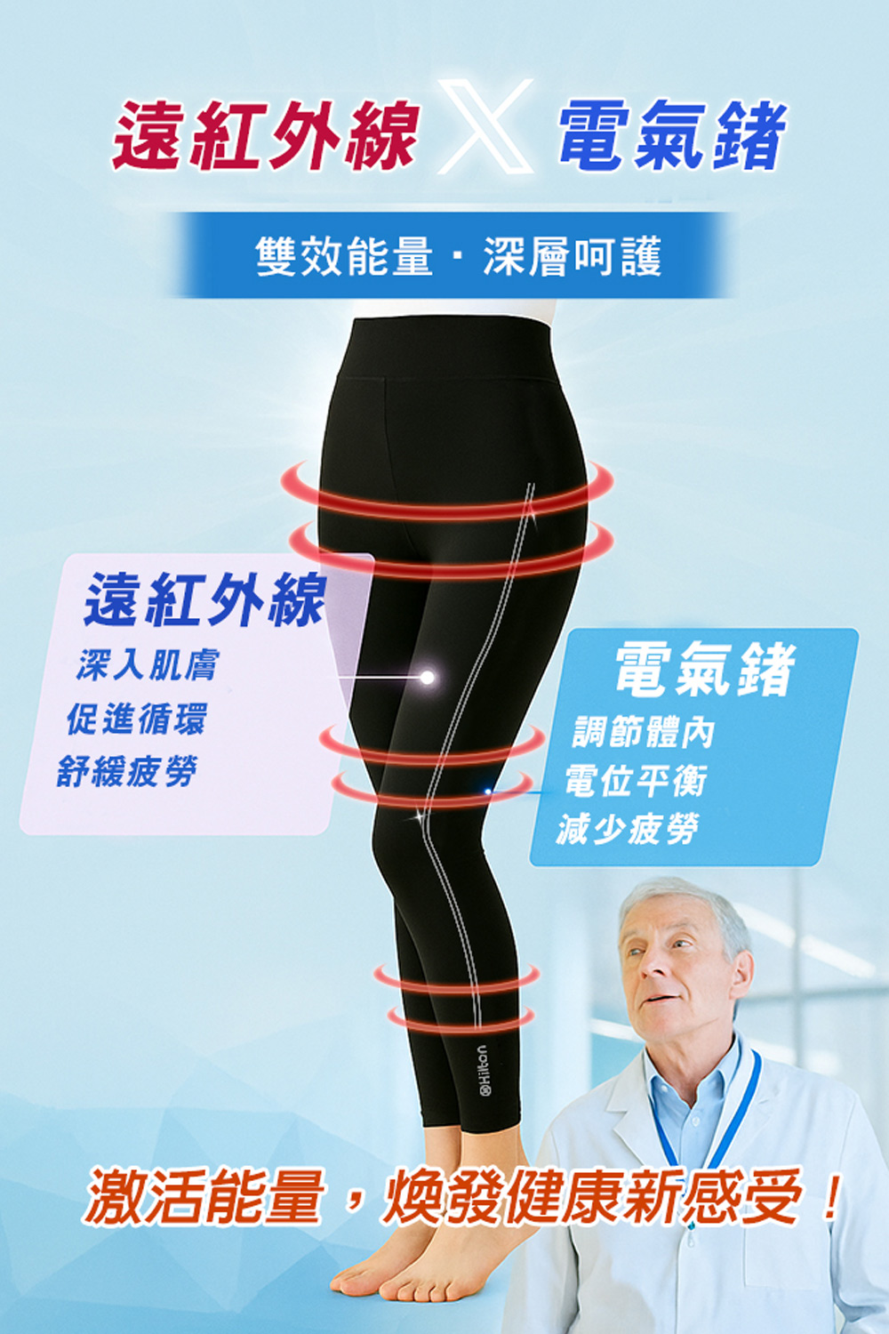 產品品名:【Hilton 希爾頓】高效遠紅外線能量電氣鍺鑽運動休閒壓力褲