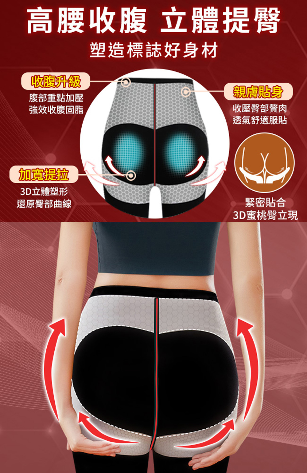 ◆專利能量布環繞加強束腹提臀效果,加入負離子,健康更升級,防菌除臭