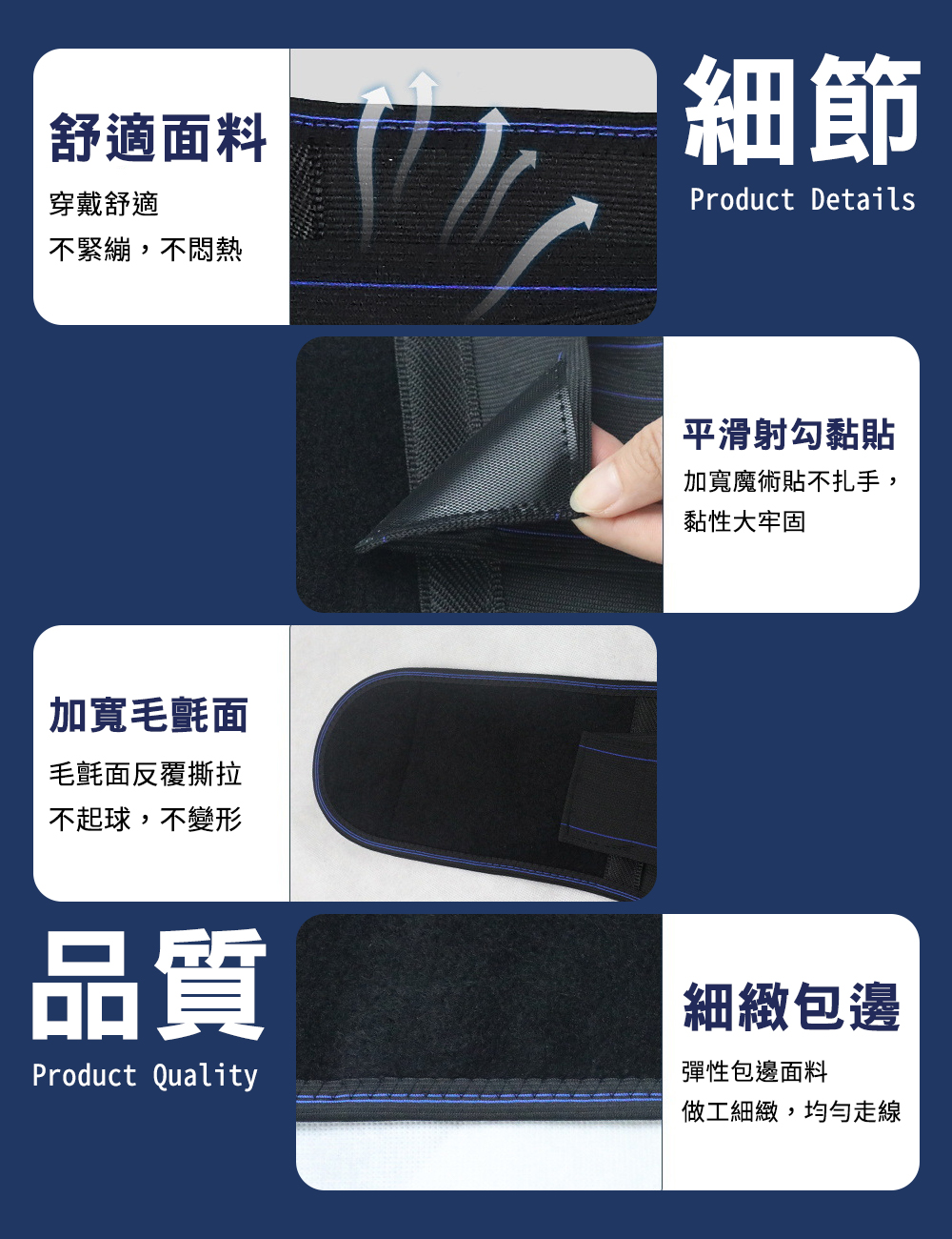 產品名稱:【希爾頓】超導量子石墨烯能量磁能腰帶 產品型號:S0072-M/S0072-L/S0072-XL 產品尺寸:107x20.5公分±5%(請參考尺寸表) 包裝尺寸:32x22x6公分±5% 淨重/毛重:0.354公斤/0.479公斤±5% 產品材質:聚酯纖維、鋁合金 內容物:主體x1 ※手工測量,實際以收到商品尺寸為準 ※洗滌方式:最高水温30。C常溫洗滌、不可熨燙、不可漂白、不可乾洗 ※此為個人消耗產品,一經拆封使用,恕無法退换貨 ※本產品適合在内衣外部使用。 ※將發熱石墨烯磁石護腰帶的魔鬼氈全部打開,展開圍繞腰部合適的位置,雙手緊 拉兩側,用力黏貼,達到收緊效果。 ※兩側助力帶,請貼在護腰末端兩側,請小心不要黏到其他區域,造成損壞,並非 產品瑕疵。