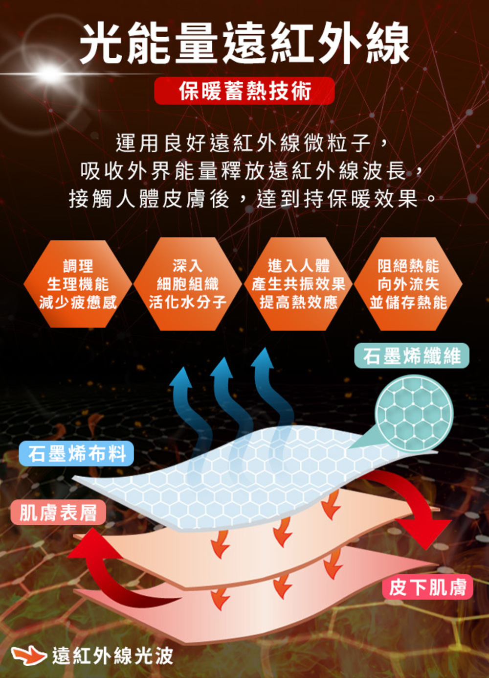 ◆感應人體波長,無需插電,採用石墨烯製成的黑科技,對於身體有百利且有保健作用