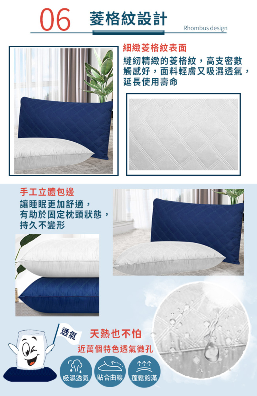 【CERES 席瑞絲】石墨烯5D透氣健康枕頭/藍色(枕頭/舒眠枕/透氣枕/羽絲絨枕)(B0011-N)