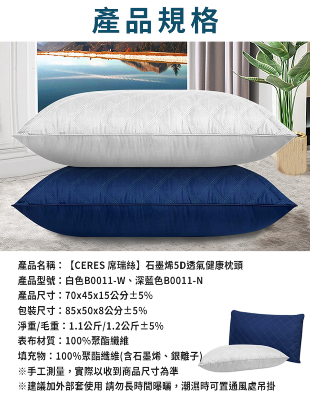 產品名稱:【CERES 席瑞絲】石墨烯5D透氣健康枕頭