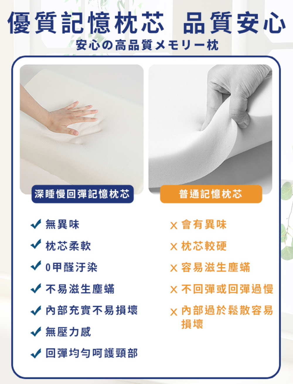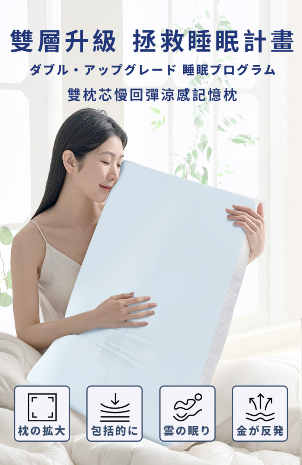 ◆雙層黃金記憶棉枕芯,超柔慢回彈