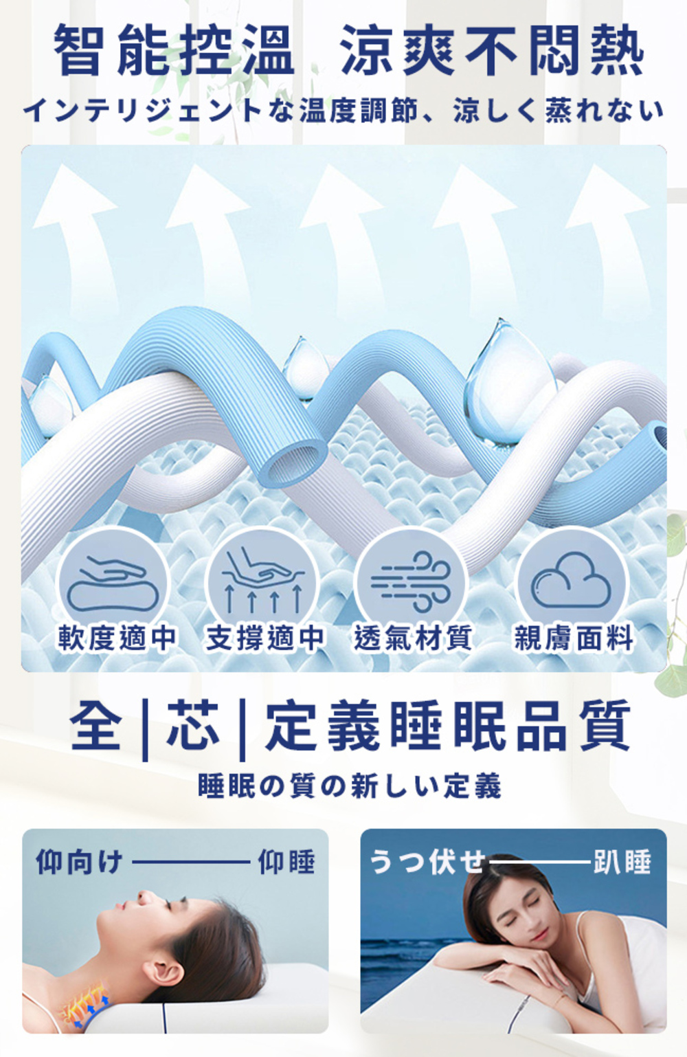 外表布材質:50%純棉、50%聚酯纖維(涼感紗)