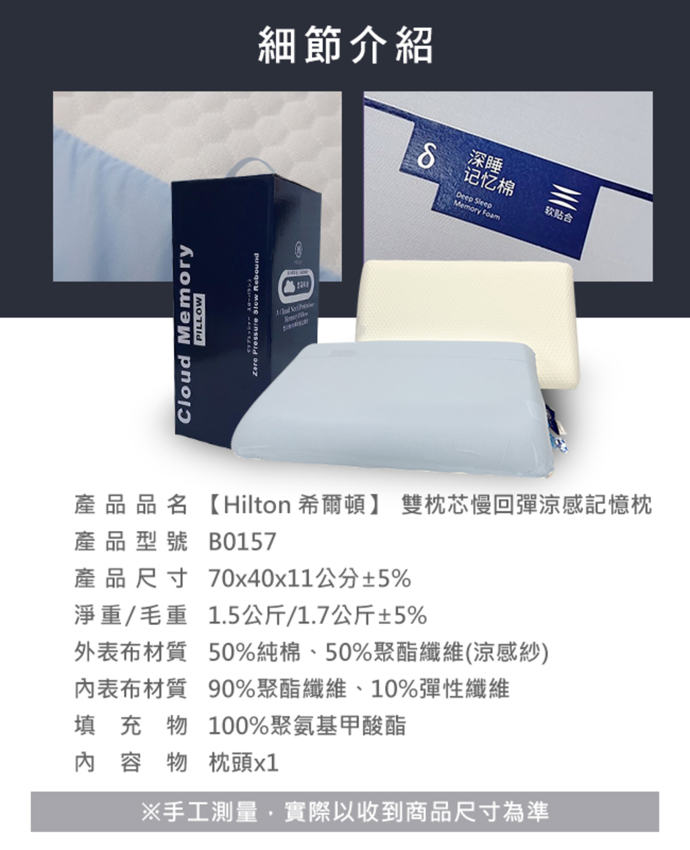 產品品名:【Hilton 希爾頓】雙枕芯慢回彈涼感記憶枕