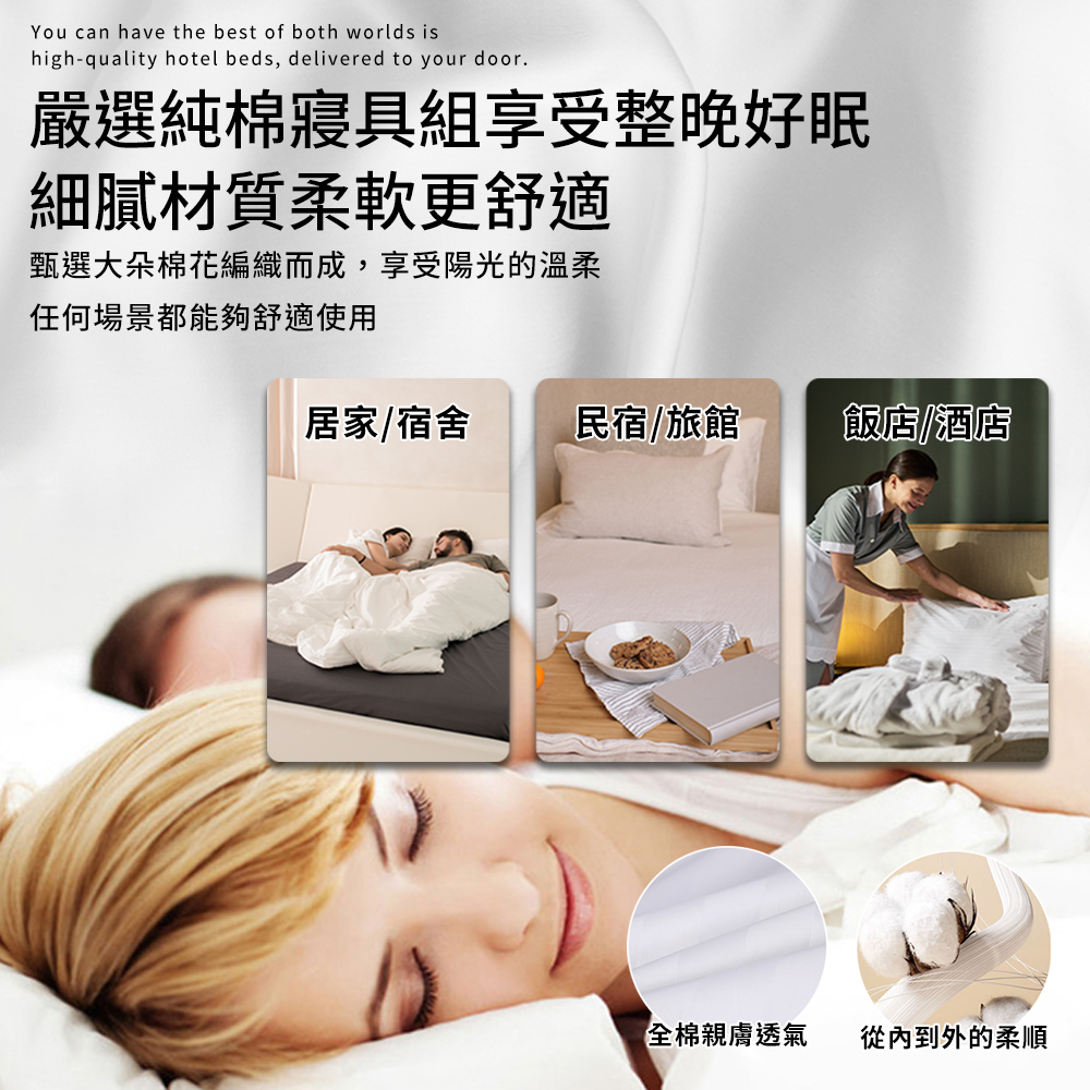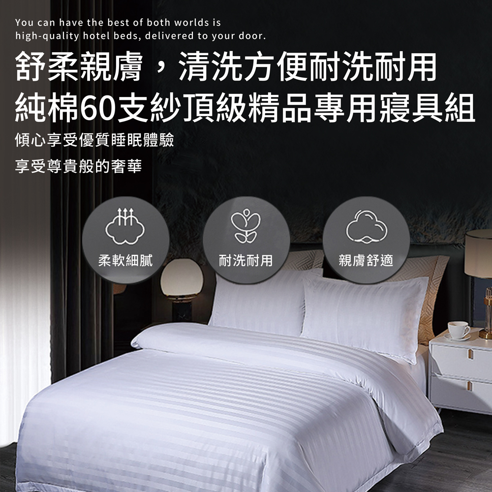 產品品名:【Hilton 希爾頓】五星級精梳純棉60支紗頂級精品專用加大床包枕套三件組