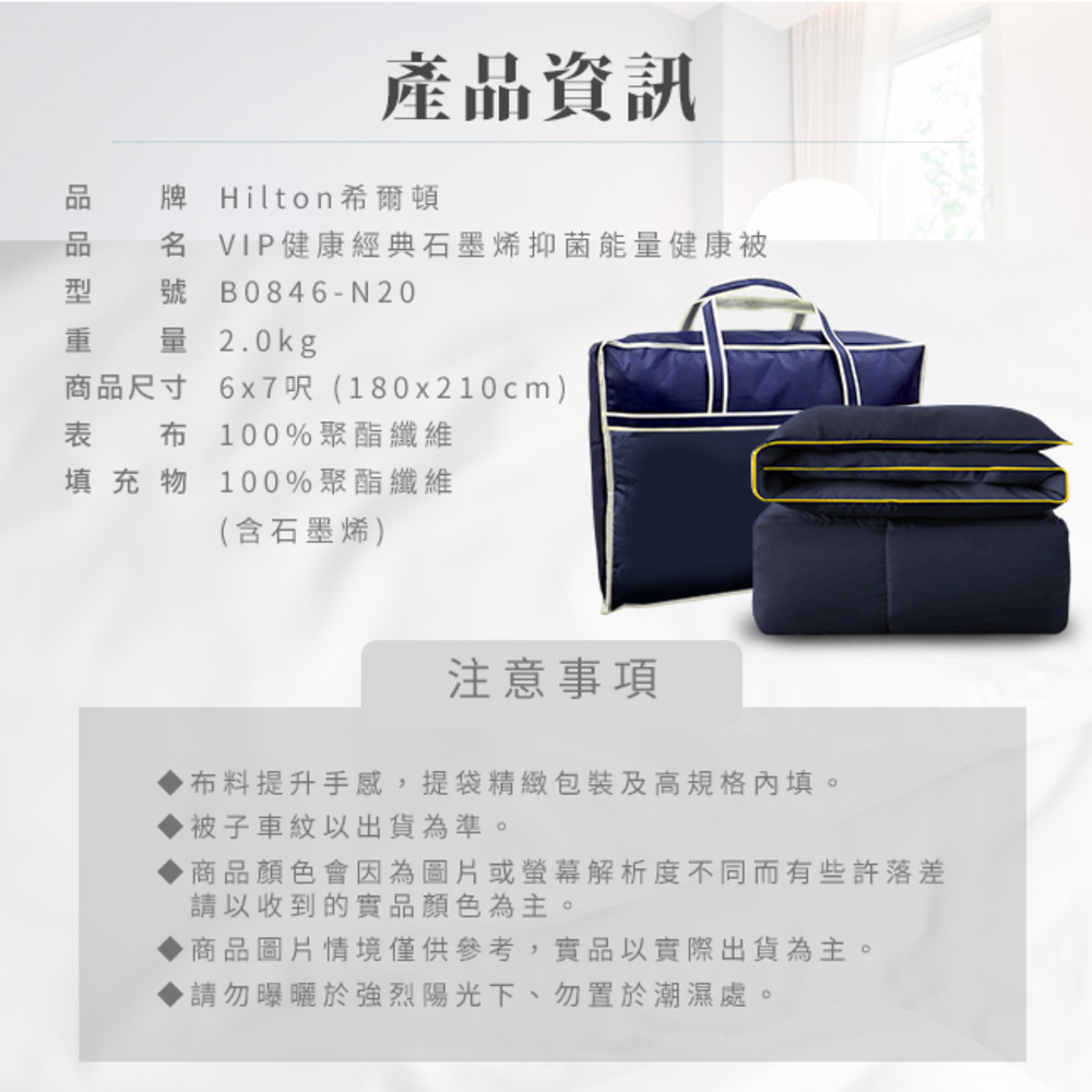 【Hilton 希爾頓】VIP系列石墨烯能量健康被2Kg/藍(續熱速暖機能被/棉被/冬被)(B0846-N20)