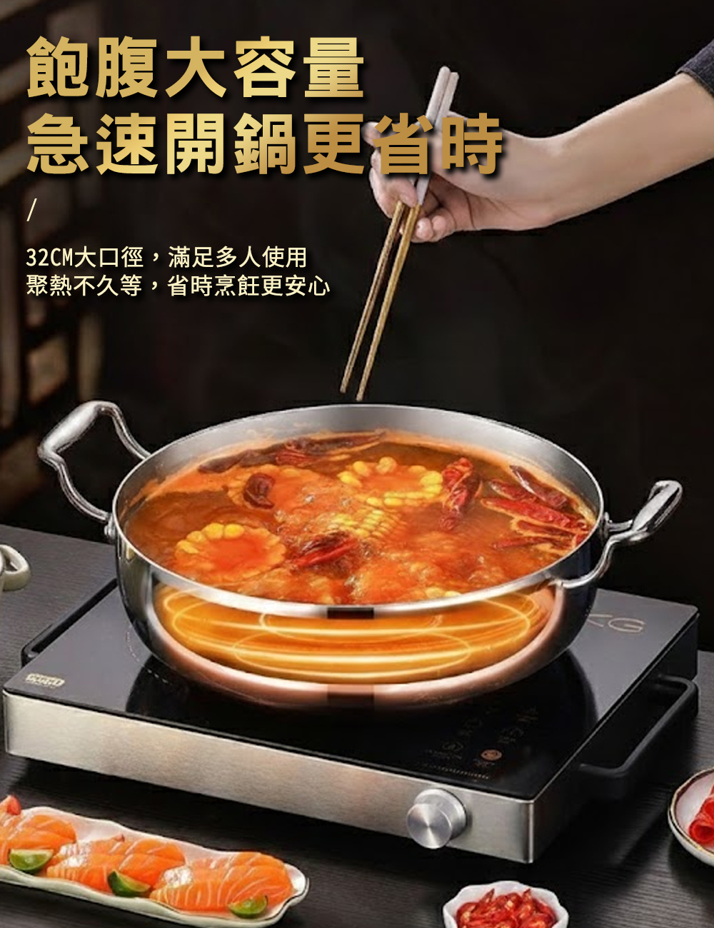 ◆32cm大容量設計,多人料理更便利