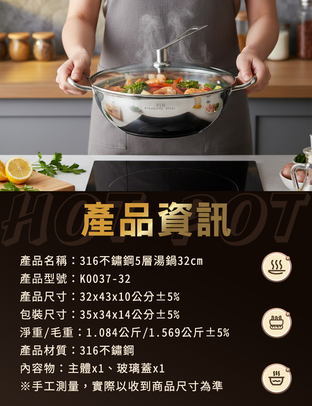 產品名稱:【ENNE】316不鏽鋼5層湯鍋32cm