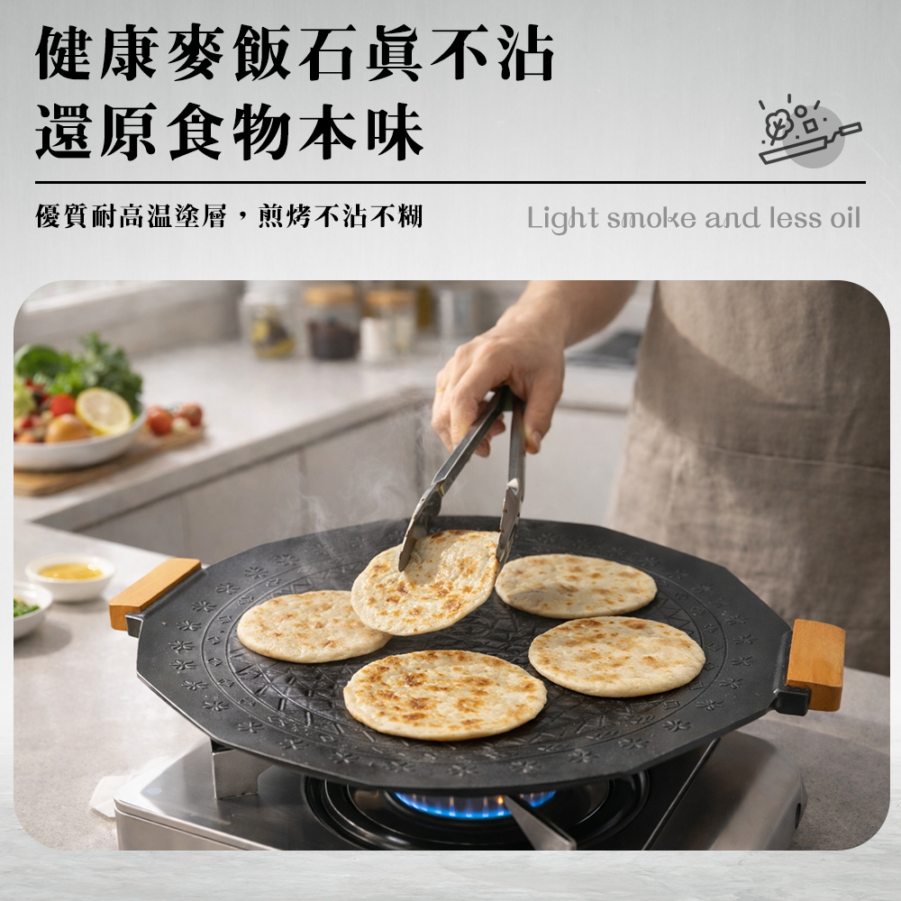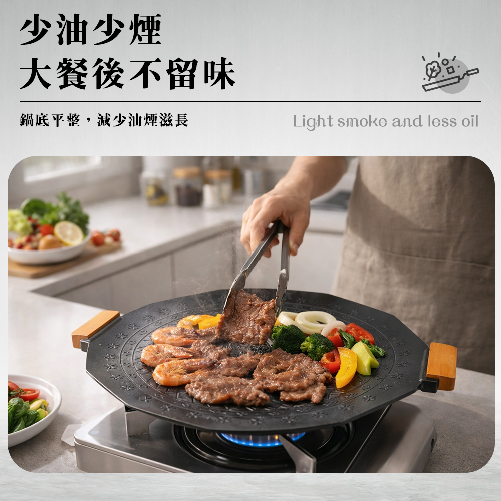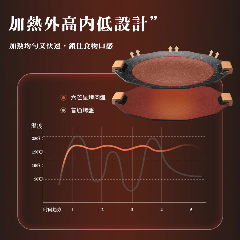 ◆六芒星紋路設計,導油導熱效率佳,減少油煙產生