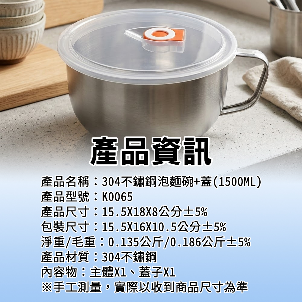 產品名稱:【ENNE】304不鏽鋼泡麵碗+蓋(1500ml)