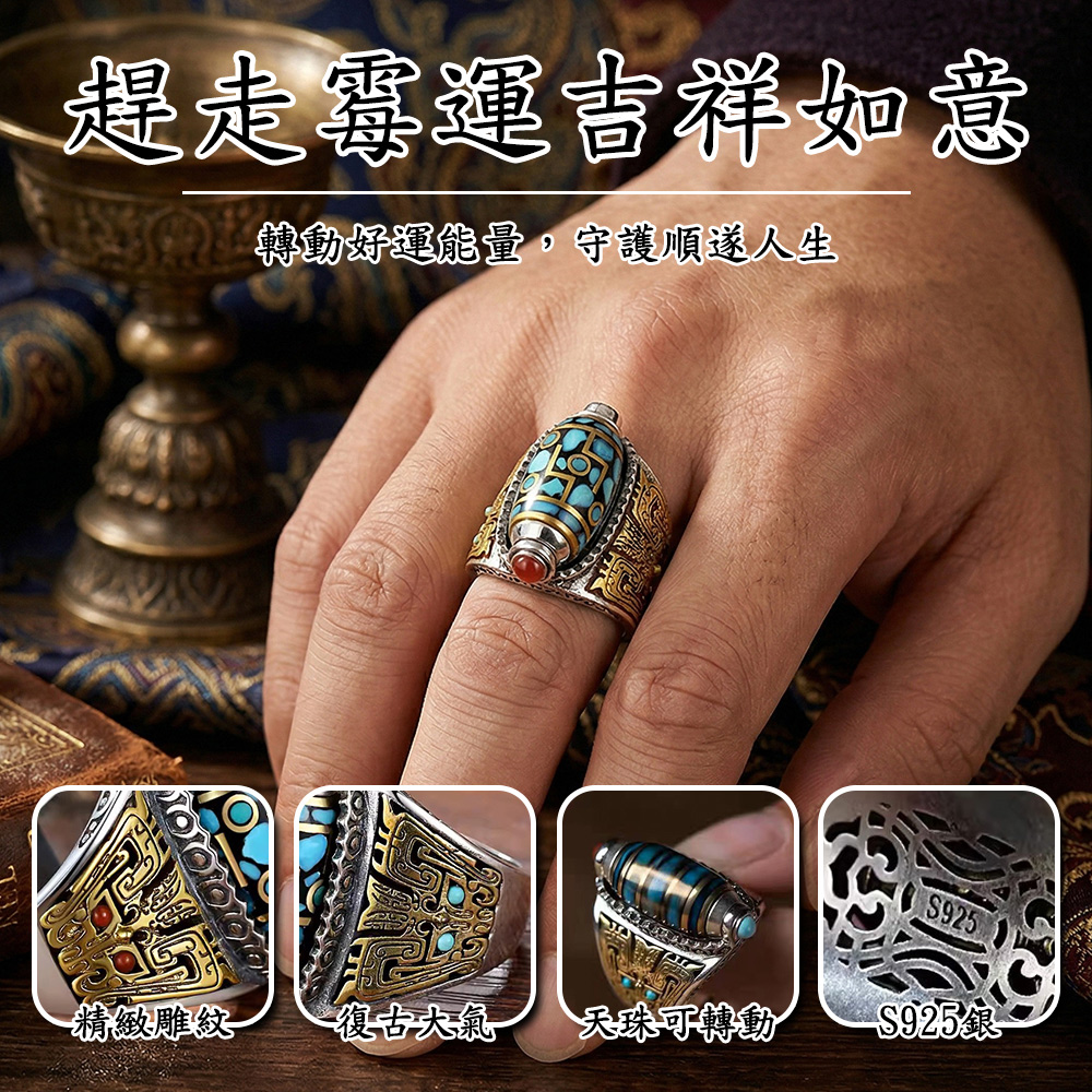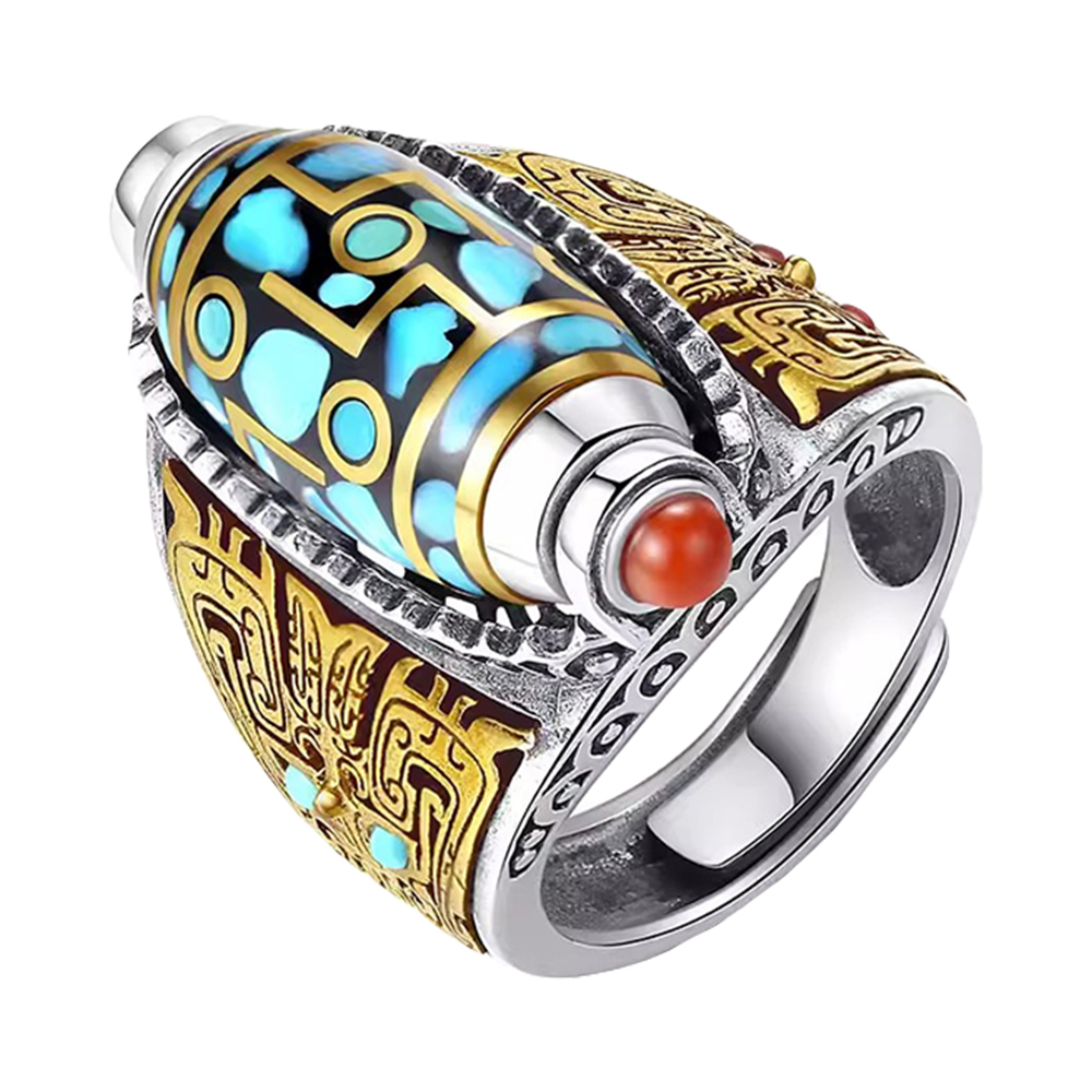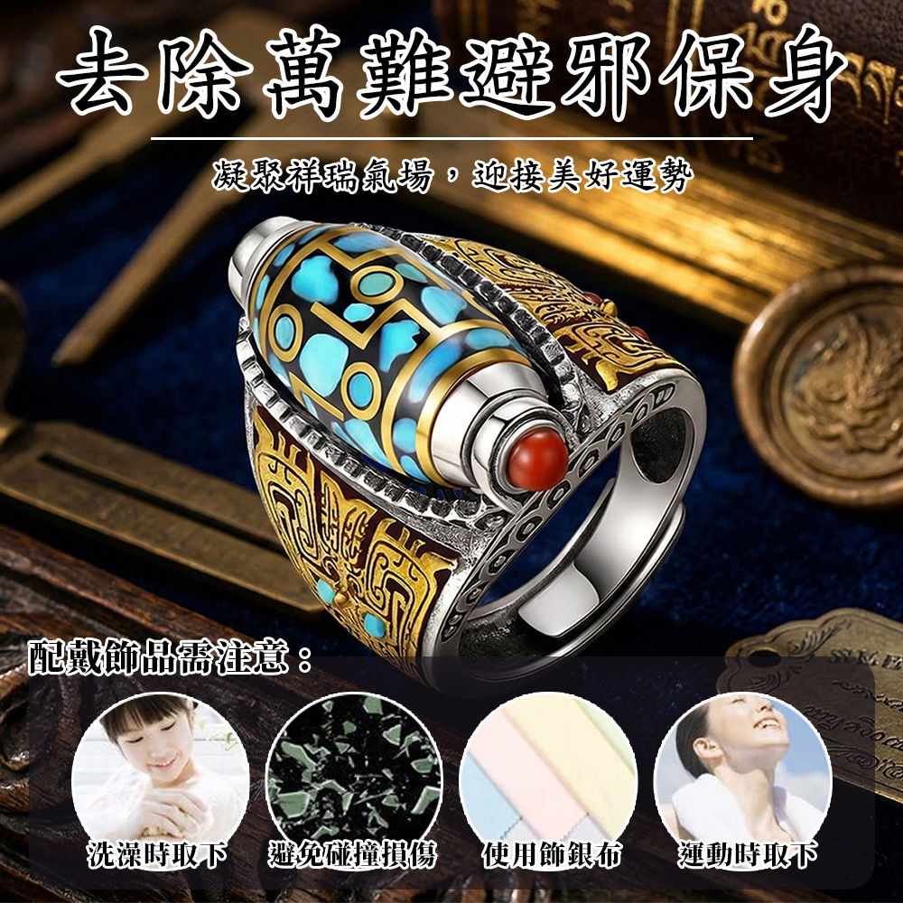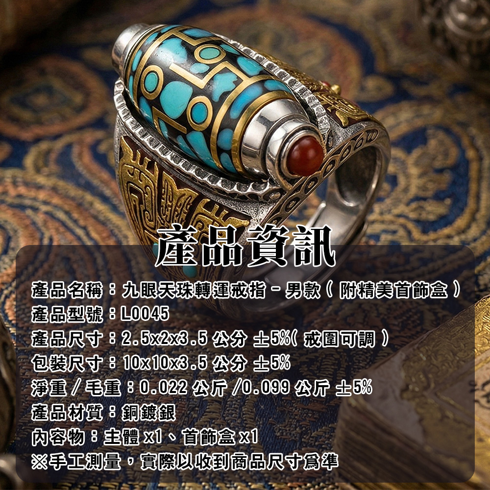 產品名稱:招財納福九眼天珠轉運戒指-戒圍可調整(附精美錦緞首飾盒)