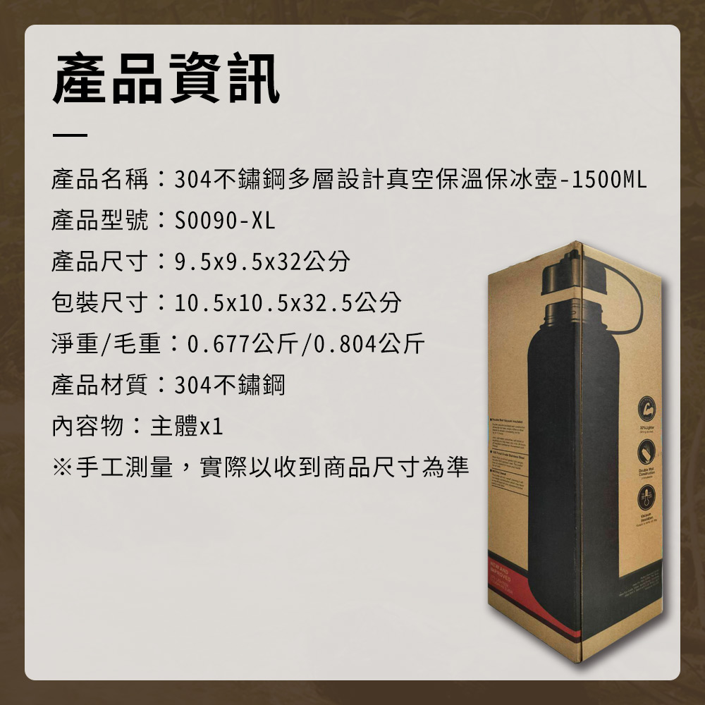 【JUSTCOOK 廚藝寶】304不鏽鋼多層設計真空保溫保冰壺-1500ML
