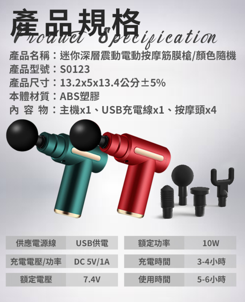 產品名稱:迷你深層震動電動按摩筋膜槍/顏色隨機