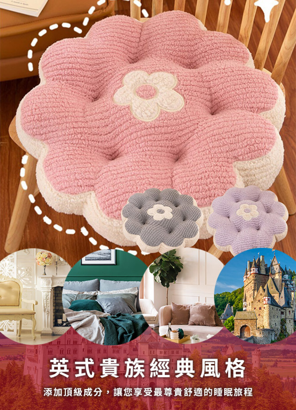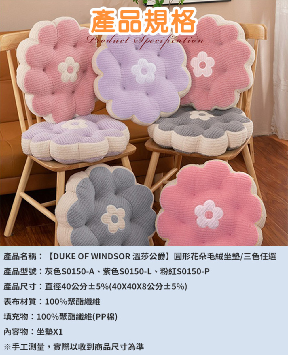 產品名稱:【Duke of Windsor 溫莎公爵】圓形花朵毛絨坐墊/三色任選
