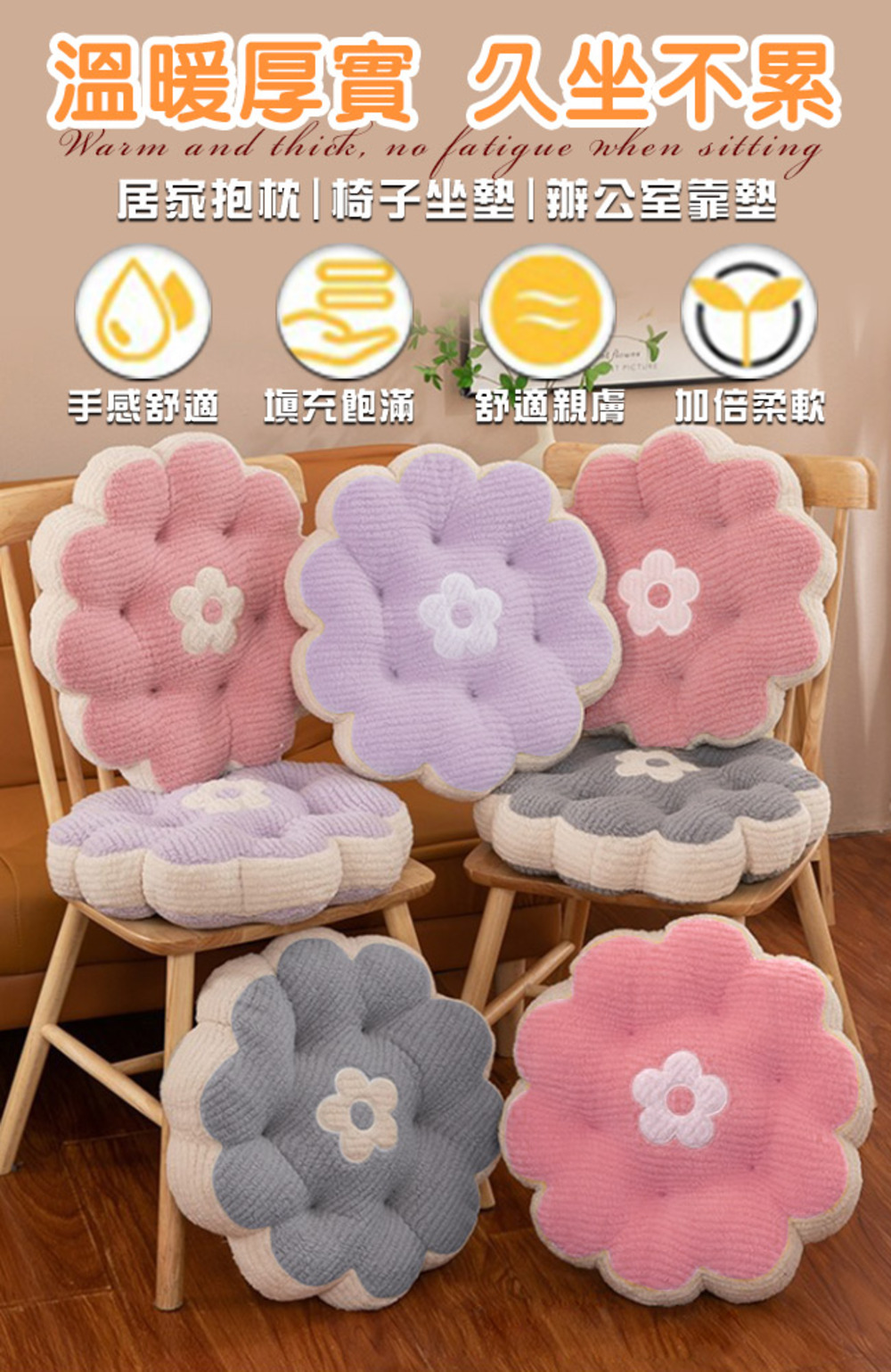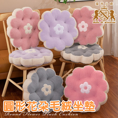 【Duke of Windsor 溫莎公爵】圓形花朵毛絨坐墊/增高墊/軟墊/沙發墊/椅墊//戶外露營/坐禪/三色