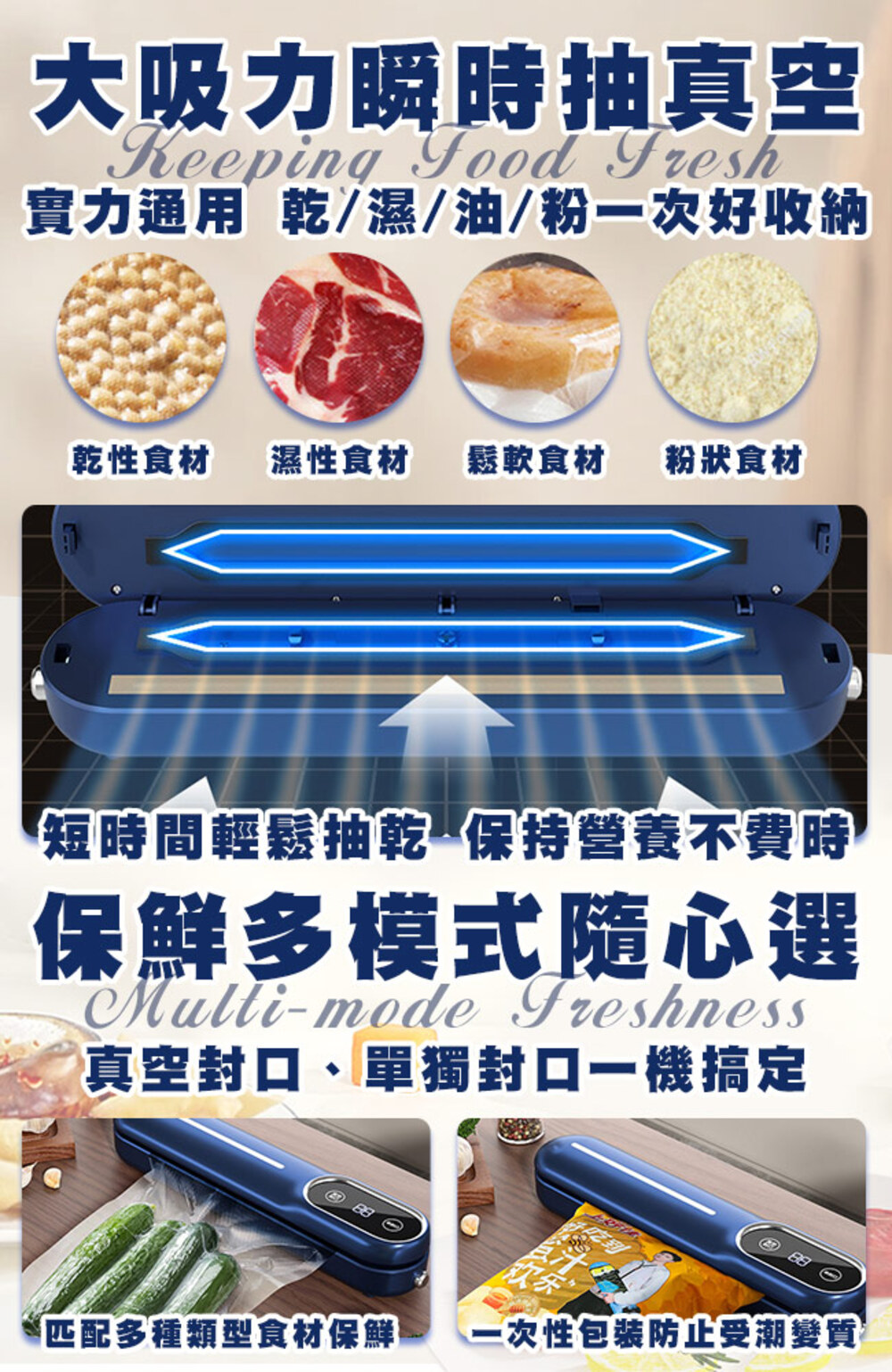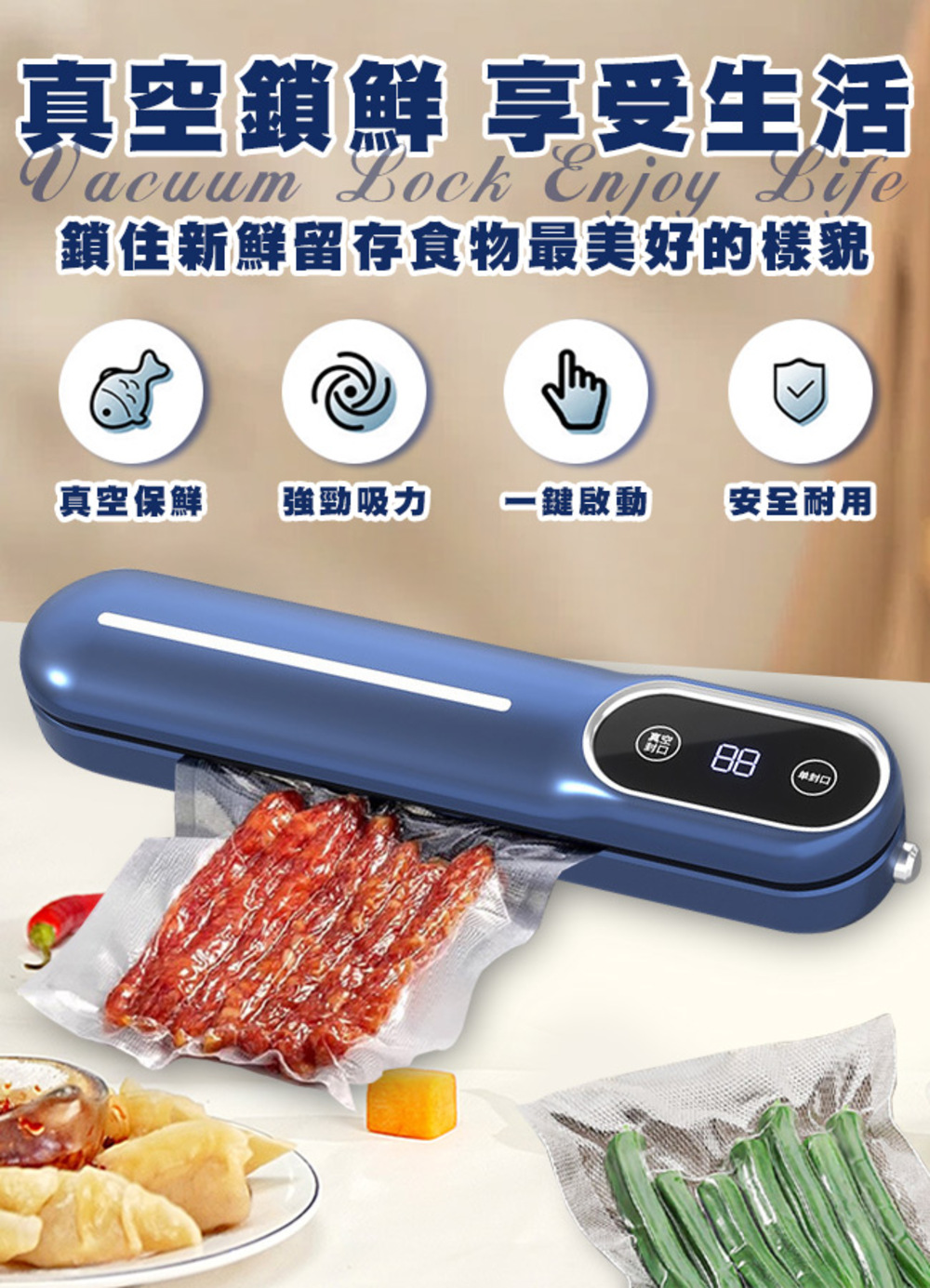 快速抽真空,讓食物保存期延長,保留最新鮮的味道!
