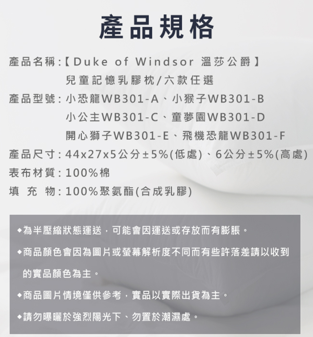 產品名稱:【Duke of Windsor 溫莎公爵】兒童記憶乳膠枕/六款任選